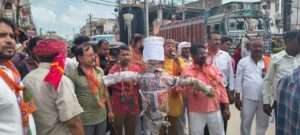 भाजपा कार्यकर्ताओं ने कांग्रेस का पुतला फूंका, राहुल गांधी से की माफी की मांग