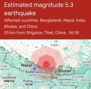 केवल भारत ही नहीं नेपाल, बांग्लादेश, चीन भी इसकी चपेट में आए हैं। भूकंप की तीव्रता इतनी तेज थी कि सर्द रातों के बीच घर पर सो रहे लोगों की नींद टूट गई। कुछ इलाकों में लोग डर से कांपते हुए नजर आए। अब यह जानकारी सामने आ रही है कि भूकंप के चलते चीन के तिब्बत रीजन में 53 लोगों की मौत हो गई है। एक घंटे के भीतर पांच बार भूकंप के झटके महसूस किए गए। इस भूकंप का केंद्र भारत में नहीं था।