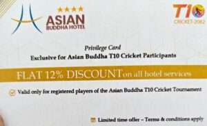 एशियन बुद्धा होटल ने टूर्नामेंट के पंजीकृत खिलाड़ियों को सभी होटल सेवाओं पर 12% की विशेष छूट देने की घोषणा की है। यह ऑफर सीमित समय के लिए उपलब्ध है।