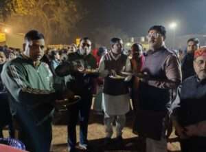 किया,शुभकामनाएं दीं और सभी के साथ प्रसाद ग्रहण किया।