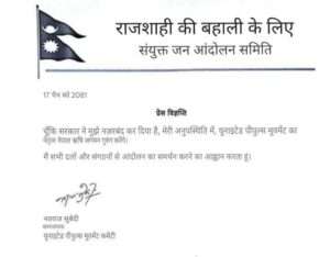 राजशाही की बहाली के लिए अब ऋषि जगमन गुरूंग करेंगे यूनाइटेड पीपुल्स मूवमेंट का नेतृत्व